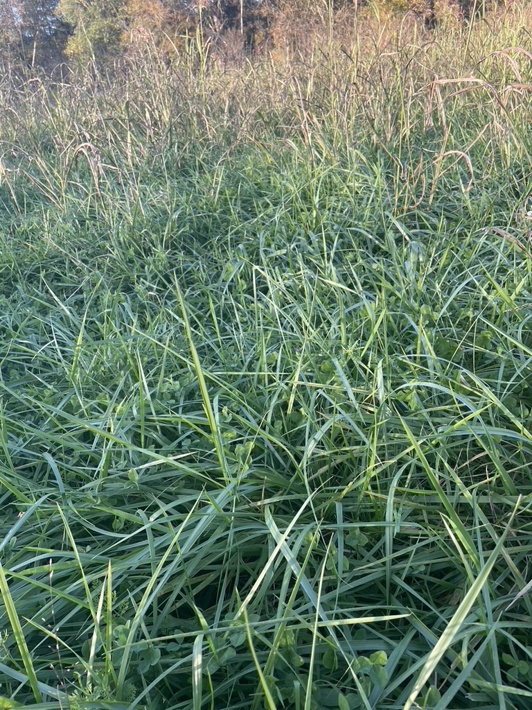 Winter pastures look good, spread the compost from the hay feeding yard over some of them, broadcast harry vetch and crimson clover all filelds then cultipacked in.