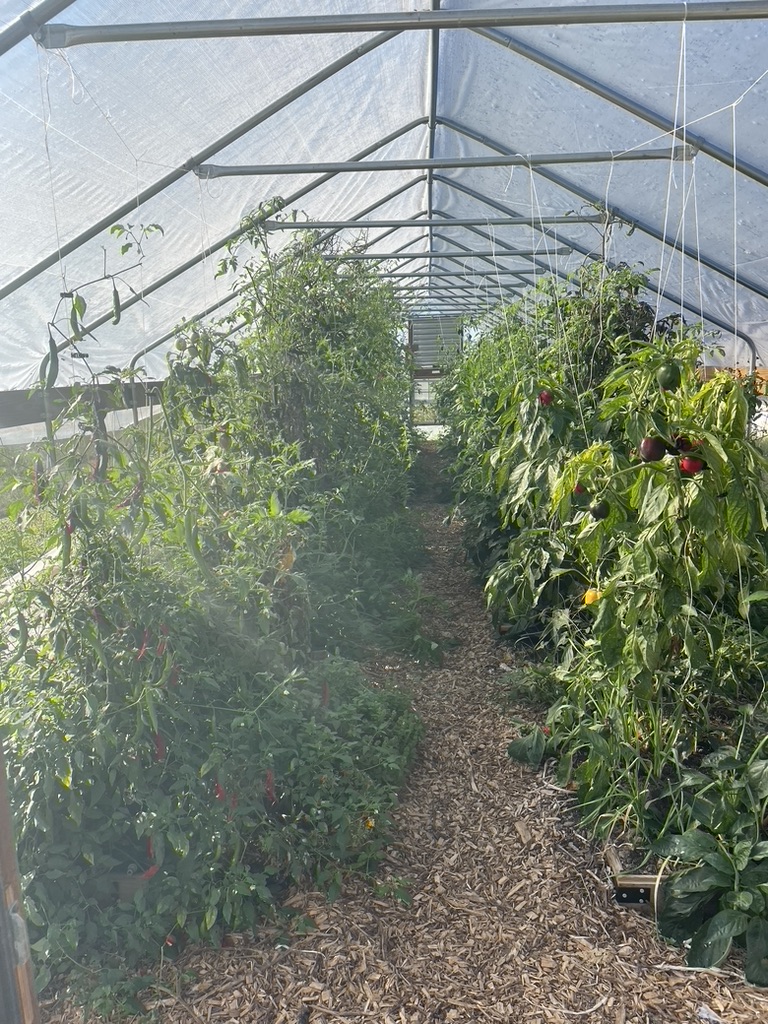 Peppers and tomatoes did well in the Jr. hoop house, will plant further apart next year.